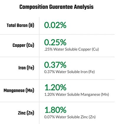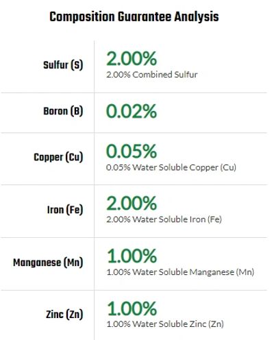 Some benefits of this formulation include: enhanced chlorophyll production, improves yield and crop quality, and increased nutrient utilization.